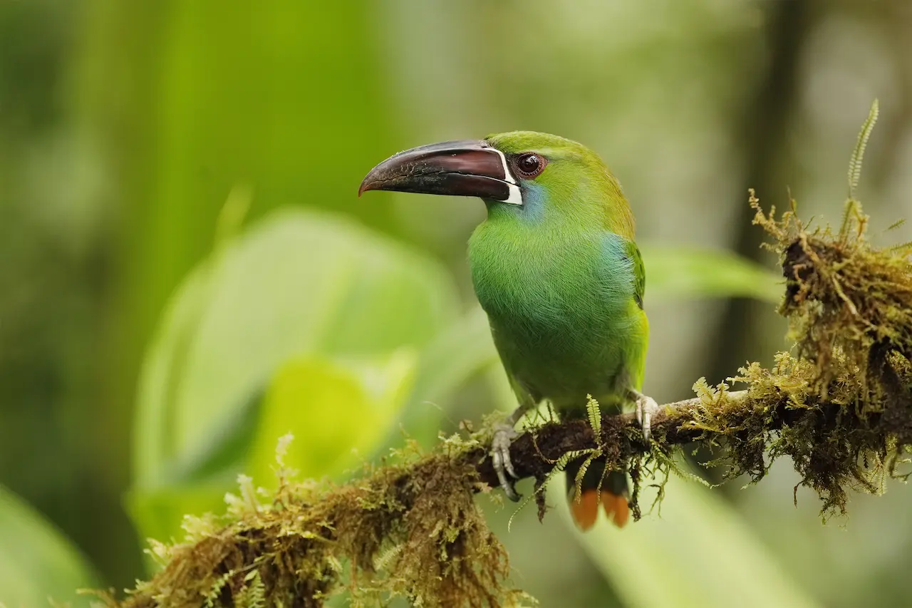 The Chestnut-tipped Toucanets (Aulacorhynchus derbianus) or Chestnut-rumped Toucanets – are South American toucans that form superspecies with the Groove-billed Toucanets (Aulacorhynchus sulcatus) and are also closely related to the Emerald Toucanets (Aulacorhynchus prasinus).