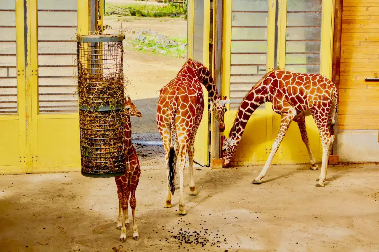 Three Petite Giraffes Eating
